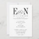 Moderne Schwarz-Weiß-Hochzeit. Klassischer schwarzer Text auf weißem Hintergrund. Mit seinen großartigen, individuell anpassbaren Buchstaben Braut und Bräutigam Monogramm mit Ampersand. Personalisieren Sie Ihre Monogramm-Initialen und Ihren Hochzeitstext. Anpassbare Rückseite in schwarz. Wir laden Sie ein, unseren Zazzle-Shop, GJ Design Co, zu besuchen, um sich passende Produkte und mehr anzuschauen.