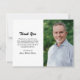 Moderne Schwarz-Weiß-Begräbniskarte mit einem einfachen, minimalistischen Design mit Ihrem Lieblings-Foto der Verstorbenen zusammen mit Ihrer personalisierten Botschaft an die links. "Danke" und der Name des Verstorbenen sind in einem eleganten Pinselskript.