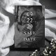 Erstellen Sie Ihre eigene personalisierte Hochzeit speichern Sie die Datumskarten. Fügen Sie einfach zwei Ihrer Lieblingsfotos mit einem Auto mit Schwarz-Weiß-Filter und benutzerdefinierten Details in einfacher moderner Typografie hinzu.