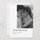 Eine moderne schwarze und weiße Foto-Hochzeit save-the-date mit sauberer Typografie und minimalistischem Layout. Dieses elegante Monochrom-Design verbindet zeitgenössischen Stil mit zeitloser Eleganz, perfekt für Paare, die einfache, raffinierte Hochzeitsausstattungen lieben.