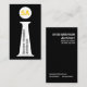 Abstrakte Visitenkarten in Schwarz, Gelb und Weiß, mit einer weißen Spalte auf schwarzem Hintergrund, einem Kreis über der Spalte mit den Monogrammen/Initialen in Gelb und dem Text. Fügen Sie auf Wunsch Ihr Logo hinzu.