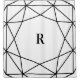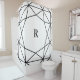 Dieses moderne Duschvorhang ist mit einem weißen Hintergrund und einem eleganten, geometrischen Muster in schwarz gehalten. Ihr erstes oder Monogramm geht in die Mitte.