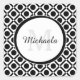 Moderne Schwarz-Weiß-Geometrie, Monogramm und Name Quadratischer Aufkleber
