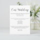 Diese elegante schwarz-weiße Hochzeitskarte ist eine zeitlose Ergänzung zu Ihrer Einladungssuite. Es ist in einem sauberen, minimalistischen Stil mit einem ausgeklügelten Skript-Titel konzipiert und eignet sich hervorragend für den Austausch wichtiger Informationen über den Hochzeitstag - wie Unterkunft, Empfang-Details, Kleiderordnung oder Ihre Hochzeitswebsite. Vollständig anpassbar, um Ihren einzigartigen Hochzeitsstil anzupassen. Personalisieren Sie Text, Schriftart und Layout mit den einfachen Bearbeitungswerkzeugen von Zazzle. Die passenden Artikel sind in der Hochzeitssuite erhältlich.