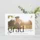 Diese moderne und trendige Ankündigung des Abschlusses besticht durch eine Schwarz-Weiß-Farbpalette und ein großes Foto Ihres Absolventen. Ein kühner und stilvoller "Grad" schmückt die Vorderseite. Auf der Rückseite der Karte befindet sich ein einfacher Typ, mit dem Sie mehr über Ihren Absolventen und deren Plan für die Zukunft erfahren können. Oder man kann es zu einer Abschlussfeier-Einladung wechseln. Andere Versionen dieses Designs finden Sie in meinem Zazzle-Shop.