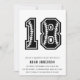 Moderne Einladung zum 18. Geburtstag. Einfaches Schwarz-Weiß-Design mit der Nummer 18 auf einem schwarzen Hintergrund.