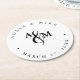 Moderne Schwarz-Weiß-Monogramm-Hochzeit Runder Pappuntersetzer