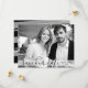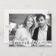 Stilvolle und schicke Moderne Schwarz & Weiß Rettete unsere Date Script Foto Announcement Cards mit weißen, handgezeichneten Streifen. Dieses Design ist elegant und trendig in Design und Typografie. Kommt mit passendem Zubehör: besuchen Sie www.sparklenglitter.com