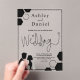 Diese elegante Schwarzweiß-Acrylhochzeit lädt zu einer modernen Hochzeit ein. Das schlichte Design zeichnet sich durch elegante schwarze Kalligraphie, einen schicken schwarzen Rahmen und eine Bräunungs- und Bräutigam-Abbildung auf einem klaren, transparenten Hintergrund aus. Die Einladungskarte enthält die Hochzeitsdetails auf der Rückseite, anstatt für eine separate Kapselkarte zu bezahlen.