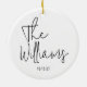 Feiern Sie Ihren besonderen Tag stilvoll mit diesem modernen Schwarz-Weiß-Ornament, das mit eleganten Schriftzeichen für ein raffiniertes und zeitloses Aussehen besticht. Ideal zum Gedenken an Ihren Hochzeitstag oder zum Geschenken an Neuvermählte, kann dieses Ornament mit Ihren Namen und Ihrem Hochzeitsdatum personalisiert werden, was es zu einem unvergesslichen Sake macht. Das minimalistische Schwarz-Weiß-Design verleiht jeder Urlaubsdekoration eine Touch Klasse, und macht sie zu einer stilvollen Ergänzung Ihres Baumes oder als nachdenkliches Geschenk für Jubiläen oder erste Weihnachtsfeiern.