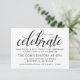 Die moderne und schicke Schwarz-Weiß-Hochzeitskarte "Celebrate" zeichnet sich durch ein stilvolles schwarzes typografisches Design mit fett kalligraphischen Schriftzeichen-Akzenten und elegantem, individuellem Text aus, der mit Ihren Hochzeitsempfangsinformationen personalisiert werden kann.