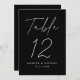 Einfache, moderne Hochzeitskarten mit "Tischnummer", die in einem handgeschriebenen, weißen Skript mit schwarzem Hintergrund (oder einer Farbe Ihrer Wahl) angezeigt werden. Um die schwarz-weiße Tischkarte zu bestellen: Fügen Sie Ihren Namen, das Hochzeitdatum und die Tischnummer hinzu. Jede Nummer muss individuell in Ihren Warenkorb aufgenommen werden. Nachdem Sie alle Tischnummern in Ihren Warenkorb gelegt haben, checken Sie einfach aus und warten Sie, bis Ihre wunderschönen Tischnummern ankommen!