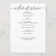 Elegante Schwarz-Weiß-Beerdigungsprogramme mit handgeschriebenen Schriftzeichen-Akzenten bieten eine moderne und zeitlose Art, das Leben eines geliebten Menschen zu feiern. Die Titelseite ist mit einem ganzseitigen Foto-Tribut mit dem Namen "In Loving Memory" versehen, und die Daten sind in einem anmutigen Drehbuch geschrieben, das mit einer reinen Typografie für einen polierten und persönlichen Look gepaart ist. Der minimalistisch-weiße Hintergrund stellt sicher, dass das Foto im Mittelpunkt steht und ein bedeutsames Anliegen für Familie und Freunde schafft. Auf der anderen Seite ist die Reihenfolge des Services klar festgelegt, einschließlich Musik, Hymnen, Lesungen und Rezensionsdetails, und bietet den Gästen während der Zeremonie einen einfachen Führer. Die Ausgewogenheit von Einfachheit und Eleganz macht dieses Design vielseitig für Beerdigungen, Gedenkfeiern oder Lebensfeiern, während die handgeschriebene Schrift eine herzliche, persönliche Touch verleiht. Dieses Programm ist perfekt als Service-Guide und als wertvolles Memento geeignet, um Liebe, Erinnerung und Würde in einem raffinierten Format zu erfassen.