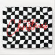 Trendy Schwarz-Weiß Schachbrettmuster, grafische Kunstwerke mit roten Kalligraphiebuchstaben für Weihnachten.