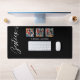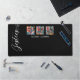 Diese moderne Foto-Schreibtischmatte für die besten Freunde verfügt über zwölf Fotos, sechs auf jeder Seite, damit Sie sich auf einem einfachen schwarzen Hintergrund mit dem Titel "Bestie" und Ihren Namen, um sich in der weißen Schrift zu personalisieren. Mit AI generierte Platzhalterbilder