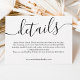 Moderne Schwarz-weiße, einfache Hochzeitsdetails Einladung