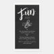 Unsere eleganten und skurrilen Hochzeitsgast-Handtücher mit modernem, schwarz-weißem Pinselskript kombiniert mit einer einfachen, klassischen weißen Typografie für ein minimalistisches Design. Passen Sie sie mit den Namen des glücklichen Paares an und sprinkle in ein paar lustige Fakten über sie. Ob Hochzeitsempfang, Probe-Dinner oder Verlobungsfeier, diese Handtücher werden Ihrem Anlass eine Touch an Eleganz und Spaß verleihen. Die Schwarz-Weiß-Farbgebung strahlt Stil aus, während die individuelle Typografie jedes Handtuch einzigartig macht. Mit diesen stilvollen und unterhaltsamen Handtüchern machen Sie Ihren Gast zum Lächeln und verließ einen bleibenden Eindruck!