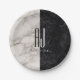 Moderne Schwarz-weiße Monogramm-Hochzeit Pappteller