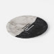 Die modernen Teller aus schwarz-weißem Marmor mit minimalistischem Split-Design, stilvollen Monogramm-Initialen und eleganten Kalligraphiebezeichnungen verleihen Ihrem Event feine Eleganz. Ideal für Hochzeiten, Verlobungsfeiern, Probe-Dinners oder moderne Feiern. Dieses schmale und anpassbare Design verbindet sich wunderschön mit neutralen oder monochromen Themen für einen polierten, kontrastreichen Look.
