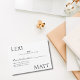 Diese moderne, schwarz-weiße RSVP-Karte zeichnet sich durch fett formatierte Typografie und ein minimalistisches Layout aus - ideal für Paare, die eine schlichte, zeitgenössische oder schwarze Krawatte planen. Mit Platz für die Gäste, um zu antworten und die Anzahl der Teilnehmer zu beachten, behalte diese Karte Ihre Schreibtischsuite stilvoll und gepflegt. Ideal für die Verbindung mit modernen oder monochromen Einladungen. Koordiniert wunderschön mit dem passenden Schwarz-Weiß-Hochzeitsgeschirr.
