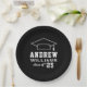 Die Teller für Rundpapier-Abschlüsse sind in einem klassischen Schwarzweiß-Typografie-Design (kann über "Anpassen!" geändert werden) mit einem Graduierungsdeckel und benutzerdefinierten Texten für den Namen und das Klassenjahr des Absolventen gestaltet.