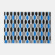 Dieser Türmchen hat ein Design aus schwarzen, blauen und grauen Hexagonen, die auf einem Feld aus Weiß zusammengeschraubt sind.