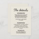 Einfache und stilvolle Retro Französisch Hochzeitsgast Infodetails. Mit funky cremigem Hintergrund und schwarzem Textlayout. Alle Informationen sind als Website, Transport, Unterkunft anpassbar. Genießen Sie es zusammen mit anderen Produkten aus dieser stilvollen, handgefertigten Retro-Hochzeitssuite.