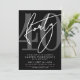 Feiern Sie stilvoll mit dieser eleganten und dennoch modernen Einladung zur 40. Geburtstagsfeier, perfekt, um einen Meilenstein im chic Stil zu begehen. Das Design verfügt über einen kühnen schwarzen Hintergrund mit einer großen „40“ in Grau oben links für ein schlankes, zeitgemäßes Aussehen.