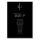 Moderne schwarze Gäste Sitzliste Tischnummer