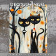 Dieses Gewebe Papier-Design bietet eine moderne und stilvolle Illustration von zwei schwarzen Katzen als elegantes Paar. Set vor einem zeitgenössischen Hintergrund, strahlen diese schicken Kameraden Eleganz und Charme aus. Dieses Design ist ideal, um Ihren decoupage-Projekten eine Touch zeitgenössischer Eleganz hinzuzufügen. Es verbindet klassischen künstlerischen Flair mit einer spielerischen und modischen Drehung. Ideal für Kunsthandwerk, das Liebe und Stil mit einer einzigartigen felinen Touch zelebriert.