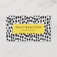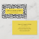 Chic Visitenkarten mit Ihrem Namen und Jobtitel, gerahmt durch ein gelbes Rechteck mit einem Hintergrund von schwarz-weiß gestrichenen Punkten. Die moderne Visitenkarte kehrt zurück, um zusätzliche Geschäftsdetails anzuzeigen.