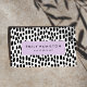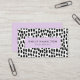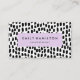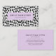 Chic Visitenkarten mit Ihrem Namen und Jobtitel, gerahmt durch ein helles lila Rechteck mit einem Hintergrund von schwarz-weiß gestrichenen Punkten. Die moderne Visitenkarte kehrt zurück, um zusätzliche Geschäftsdetails anzuzeigen.