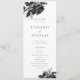 Modernes und minimalistisches, individualisierbares Hochzeitsprogramm. Die Rose und die Vegetation sind in Schwarz gehalten. Personalisieren Sie durch das Hinzufügen von Namen, Hochzeitsfeier und eine Danksagung Nachricht. Diese schwarz-blumengeschmückten Hochzeitsprogramme sind perfekt für jedes Hochzeitsthema und jede Hochzeitszeit.
