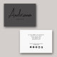Ein schönes schwarz auf dunkelgrau Design mit rustikalem handgeschriebenem Skript ergänzt durch einfachen modernen Text. Eine einfache und berufliche Art, Ihr Unternehmen vorzustellen. Social Media Icons, die in der Gestaltung dieser Visitenkarte für Sie enthalten sind. Personalisieren Sie Ihre Daten, um Ihre eigene Visitenkarte zu erstellen.