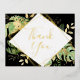 Diese tropische moderne und elegante Goldfolie Dankeschön Postcard ist eine einfache Möglichkeit, Ihren herzlichen Dank zu senden. "Danke" wird in der Folie Ihrer Wahl mutig über die Vorderseite gezeigt. Der Text wird durch einen vereitelten Rahmen hervorgehoben. Tropische Blätter und Farne auf schwarzem Hintergrund ragen hinter dem Rahmen heraus. Goldfolien-Spritzer verleihen dem Design ein wenig raffinierte Lustigkeit. Eine handgeschriebene Note auf der Rückseite der Postkarte gibt ihr eine persönliche Touch.