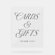 Moderne Hochzeitskarten und Geschenkschild mit "Karten & Geschenke" in elegantem schwarzen Typografie-Stil: eine Kombination aus Kalligrafie und Serifenschrift. Personalisieren Sie die durchsichtigen Acrylkarten und Geschenkzeichen mit einer kurzen Danksagung oder Sondertext. Das einfache Hochzeitskarten- und Geschenkschild ist perfekt für Ihre Hochzeit, Paardusche, Verlobungsfeier, Babydusche, Geburtstagsparty oder besondere Veranstaltung.