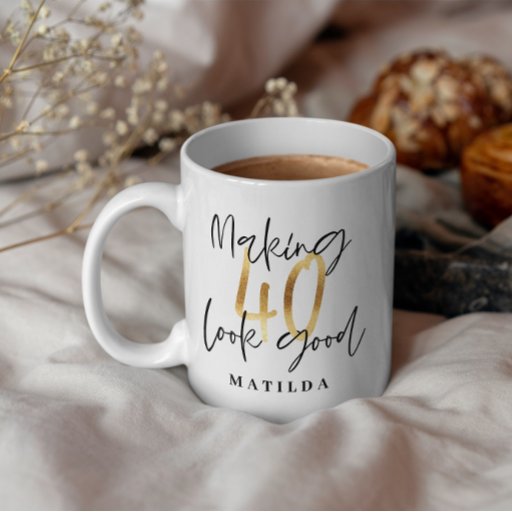 Moderne schwarze und goldene Typografie 40. Geburtstagsgeschenk. Teil einer eleganten, stilvollen Kollektion.