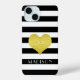 Moderne schwarze und weiße Streifen Gold Herzname Case-Mate iPhone Hülle