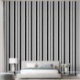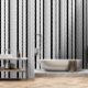 Die Tapete mit Schale und Stick weist ein schwarz, weiß und grau gestreiftes Muster auf.