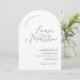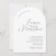 Stellen Sie Ihre Hochzeitsfeier mit zeitloser Eleganz mit unserer Arch Shaped Wedding Einladung vor. Diese exquisite Einladung ist für Paare gedacht, die die Schönheit der Einfachheit und Eleganz schätzen. Die einzigartige Silhouette bietet eine anmutige und zeitgenössische Präsenz, die Aufmerksamkeit erregt und als wertvolles Wahrzeichen für Ihre Gäste dient. Der knallige, weiße Hintergrund bietet eine elegante Leinwand, die das minimalistische Design perfekt ergänzt und die Ästhetik insgesamt verbessert. Die Wahl des schwarzen Textes fügt eine Touch von klassischer Eleganz hinzu, sodass Ihre Hochzeitsdetails mit Klarheit und Stil präsentiert werden. Im Mittelpunkt dieses Designs stehen die elegant geschriebenen Namen der Braut und des Bräutigams. Diese Schriftart-Wahl fügt eine persönliche und intime Touch hinzu, sodass Ihre Namen der Mittelpunkt der Einladung mit unterdrückter Anmut. Ideal für eine Vielzahl von Hochzeitsthemen, von eleganten Stadtfeiern bis hin zu intimen Gartenveranstaltungen. Das zeitlose Design dieser Einladung ergänzt jeden Stil und fügt eine Touch zeitgenössischer Eleganz hinzu. Erleben Sie einen unvergesslichen Tag mit unserer Arch Shaped Wedding Invitation, bei der elegante Einfachheit und zeitlose Eleganz aufeinander treffen. Lass diesem wunderschönen Set den Ton für eine Hochzeit voller Liebe, Freude und unvergessliche Erinnerungen.
