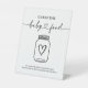 Das elegante und schlichte Tafelschild mit einem modernen Schriftzeichen mit Herz lädt die Gäste zu einer Partie "Guess the Baby Food" ein.