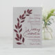 Moderne Script Burgundy Blätter auf der grauen Hoc Einladung