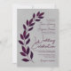 Moderne Script Cassis Lila Blätter auf der grauen Einladung