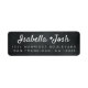 Einfaches und modernes Schwarz-Weiß-Ehering-Adressetikett mit Ihren Namen in weißem, elegantem, handgeschriebenem Skript auf Chalkboard-Hintergrund. Fügen Sie einfach Ihren Namen und Ihre Adresse hinzu. Exklusiv für Sie entworfen von Happy Dolphin Studio. Wenn Sie Hilfe oder passende Produkte benötigen, kontaktieren Sie uns bitte unter happydolphinstudio@outlook.com. Wir helfen Ihnen gerne, Ihre Hochzeit zum schönsten Tag zu machen!