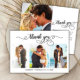Moderne Elegante Kalligrafie Chic Script 3 Foto Collage Wedding Dankeschön Karte. Stilvolle Moderne Hochzeit danke Ihnen Vorlage mit 3 Foto auf der Vorderseite mit dem Text "Danke" in einem skurrilen Wirblen Handschrift Schrift Swash Schwanz Schriftart. 2-seitige Karte am hinteren Foto (1). Einfaches Personalisieren Ihres Namens und Dankeschön Nachricht. Wenn Sie lieber Ihre Notiz handschreiben, löschen Sie einfach den Beispieltext, um mehr Platz zu machen. Wenn Sie Hilfe oder Match-Artikel benötigen, kontaktieren Sie mich bitte!