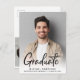 Moderne Abschlussfeier Einladung Postcard mit dem Foto des Absolventen überlagert mit "Graduate" in einer zeitgenössischen fett geschrieben. Fügen Sie ihren Namen, das Klassenjahr und die Schule in einfacher Typografie hinzu. Fügen Sie auf der Rückseite ein zusätzliches Foto und die Details der Graduierungsparty hinzu.