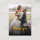 Ein großartiger und nachdenklicher Weg, um Ihren Freunden, der Familie und den Mitarbeitern zu danken, die Ihnen an Ihrem Hochzeitstag mit diesem modernen Foto ihre Präsenz geschmückt haben. Dank der handgeschriebenen Goldeffekte können Sie sich sowohl auf der Vorderseite als auch auf der Rückseite dieser Karte von Fotos "Dankeschön" abheben