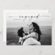 Modernes Script Foto Hochzeit Engagement Party Einladungen Ankündigung. Die Rückseite enthält zusätzliche Informationen für Party Einladungen und/oder Registrierungsinformationen. Klicken Sie auf die Schaltfläche Personalisieren/Bearbeiten, um dieses Design mit Ihren Fotos und Details anzupassen.