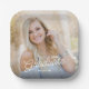 Die Papierplatte der Graduierungspartei verfügt über ein quadratisches Foto, das die gesamte Platte ausfüllt und mit modernem Schriftzeichen auf dem Foto akzentuiert ist. Personalisieren Sie mit dem Namen des Absolventen und geschlossen Jahr.