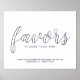 Modernes Script Silver Gastgeschenke Hochzeiten Zeichen mit dem Titel "Gefallen" in realer silberne Folie moderne Drehbuch Schriftart mit Details in echter silberne Folie moderne Sans Serif Schriftart auf weißem Hintergrund.